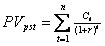 Приведенная стоимость денежного потока постнумерандо PVpst рассчитывается на основе формулы (2.9) в общем случае равна:
