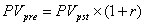 Основной результат расчета — определение общей величины приведенного денежного потока. Именно обратная задача является основной при оценке инвестиционных проектов. Несложно увидеть, что рассмотрение того же самого потока как потока пренумерандо приводит к тому, что каждый элемент денежного потока дисконтируется на один период меньше (не с конца соответствующего периода, а с начала – ближе к началу периода), откуда следует, что: