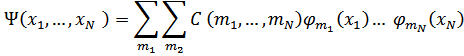 Необходим для описания систем с переменным числом частиц. Пусть Ψ1 (ξ), Ψ2 (ξ), … – некоторая полная ортонормированная система волновых функций стационарных состояний одной частицы (ξ – набор координат и проекций спина) Обычно это плоские волны – волновая функция свободной частицы с определенными значениями импульса и проекций спина. Обычно для сведения спектра состояний к дискретному, рассматривают движение частиц в большом объеме V. В системе свободных частиц импульсы частиц сохраняются по отдельности. Тем самым сохраняются и числа заполнения состояний – числа N1, N2, …, указывающие, сколько частиц находится в каждом из состояний Ψ1, Ψ2, … В системе взаимодействующих частиц импульсы каждой из них уже не сохраняются, а потому не сохраняются и числа заполнения. Для такой системы можно говорить лишь о распределении вероятностей различных значений чисел заполнения. Поставим себе целью построить математический аппарат, в котором именно числа заполнения (а не координаты и проекции спина) играют роль независимых переменных. В таком аппарате состояние системы описывается «волновой функцией в пространстве чисел заполнения», которую мы обозначим как Ф(N1, N2, …,t). Обычная координатная функция обозначается Ψ(ξ1, ξ2,…,t) Тогда и операторы различных физических величин должны формулироваться в терминах их воздействия на функции чисел заполнения. Теперь рассмотрим вопрос с другой стороны. Пусть имеется система бозонов. Рассмотрим преобразование уравнения Шредингера в представлении чисел заполнения