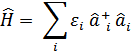 Интерпретация правой части хорошо известна. Гамильтониан определяет переходы частицы j с уровня Теперь выразим эту же мысль в представлении чисел заполнения. До перехода имелось После перехода число частиц на уровне Теперь рассмотрим это описание на рис.
