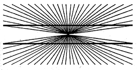 Рис. 10. Константность восприятия. Из двух одинаковых по величине объектов более удаленный дает меньшее изображение на сетчатке глаза. Однако это не влияет на адекватную оценку действительной величины. В наибольшей степени константность наблюдается при зрительном восприятии цвета, величины и формы предметов. При восприятии прямоугольного предмета (например, листа бумаги) с разных точек зрения на сетчатке могут отображаться и квадрат, и ромб, и даже прямая линия. Однако во всех случаях мы сохраняем за этим предметом присущую форму. Белый лист бумаги вне зависимости от его освещенности будет восприниматься как белый лист. Константность восприятия ― не наследственное качество, она формируется в опыте, в процессе обучения. Восприятие не всегда дает абсолютно верное представление о предметах окружающего мира. Восприятие может быть иллюзорным (ошибочным). Иллюзия ― это искаженное восприятие реально существующей действительности. Иллюзии обнаруживаются в деятельности различных анализаторов. В наибольшей степени известны зрительные иллюзии, которые имеют самые различные причины: практический опыт, особенности анализаторов, изменение привычных условий. Например, вследствие того, что движения глаз по вертикали требуют больших усилий, чем движения по горизонтали, возникает иллюзия восприятия прямых одной длины, расположенных по разному: нам кажется, что вертикальные линии длиннее, чем горизонтальные. Если попросить группу людей разделить пополам вертикальную линию, то большинство из них проделают это "в пользу" верхней линии На рис. 11 показан пример иллюзии восприятия высоты цилиндра и ширины его полей. Размеры цилиндра по высоте кажутся больше, а в действительности высота цилиндра и ширина его полей одинакова. Другой пример показан на рис. 12, когда из-за зрительных иллюзий параллельные линии на изображенном фоне искривляются. Возможны и другие причины зрительных иллюзий, когда мы часто видим нечто таким не потому, что оно такое, а потому, что оно должно быть таким. Такова особенность психического образа.