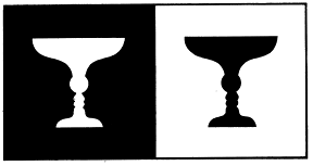 Наиболее ярко предметность восприятия проявляется во взаимообособлении фигуры и фона. В привычных ситуациях мы не обращаем на это большое внимание, но первое что нужно сделать при восприятии зрительной информации, это решить, что считать фигурой, а что фоном. Например, на рис.13 возможно двойственное восприятие: ваза или два лица. При этом, один увидит изображенную на рисунке Рис.13. Ваза или два лица. вазу на черном фоне, а другой - увидит два профиля лица на белом фоне. Это означает, что у одних белая ваза оказалась фигурой восприятия, а черные профили – его фоном, у других наоборот. Таким образом между фигурой и фоном восприятия восприятия существуют взаимообратимые отношения.