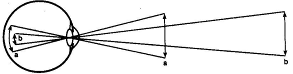 В основе восприятия объемности предметов лежит бинокулярное зрение (видение с помощью двух глаз). При этом видении получаются два изображения: на сетчатке левого и правого глаза. Эти изображения не совсем одинаковы: изображение предмета на сетчатке левого глаза отражает его больше с левой стороны, тогда как на сетчатке правого глаза отражается больше правая сторона предмета. Одновременное видение предмета двумя глазами дает впечатление объемности воспринимаемого предмета. При значительном удалении от нас предметов, когда их изображения на обеих сетчатках теряют свои различия, мы воспринимаем предметы как объемные на основании представлений, сохранившихся от рассматривания на близком расстоянии (рис. 20). Рис. 20 Относительный размер как монокулярный признак удаленности. При этом большое значение имеют законы перспективы и светотени. Известно, что на плоской картине, руководствуясь правилами перспективы и светотеней, можно изобразить предметы так, что они будут восприниматься как объемные.
