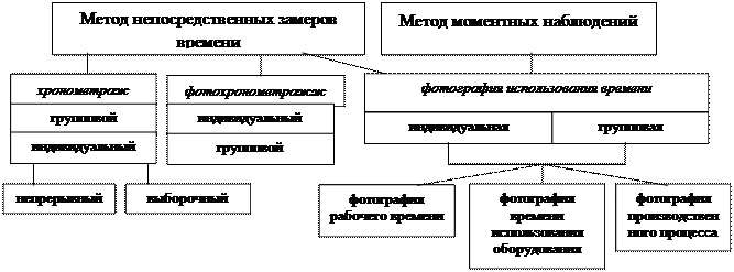 К основным методам изучения затрат рабочего времени относятся хронометраж и фотография рабочего времени (фотография рабочего дня), которые имеют разновидности, применяемые в зависимости от поставленной цели и способов проведения замеров. Хронометраж в нормировании труда – это изучение затрат рабочего времени путем наблюдения на рабочем месте и измерения продолжительности циклически повторяющихся элементов ручной и машинно-ручной работы, относящихся к оперативному или подготовительно-заключительному времени.
