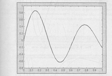 на отрезке [0, 1] с шагом 0.05, произведя следующие действия: 3. Сформируйте вектор-строку х при помощи двоеточия. 4. Вычислите значения у(х)от элементов х (не забудьте использовать поэлементное умножение). 5. Запишите результат в вектор-строк у у. 6. Выведите х и у. Результат, отображенный на экране, не очень напоминает таблицу: > х = [0:0.05:1]; » у = ехр(-х).*sin(10*x); » x x = Columns 1 through 7 0 0.0500 0.1000 0.1500 0.2000 0.2500 0.3000 Columns 8 through 14 0.3500 0.4000 0.4500 0.5000 0.5500 0.6000 0.6500 0.7000 0.7500 0.8000 0.8500 0.9000 0.9500 1.0000 y= Columns 1 through 7 0 0.4560 0.7614 0.8586 0.7445 0.4661 0.1045 Columns 8 through 14 -0.2472 -0.5073 -0.6233 -0.5816 -0.4071 -0.1533 -0.1123 0.3262 0.4431 0.4445 0.3413 0.1676 -0.0291 -0.2001 Вектор-строки х и у состоят из двадцати одного элемента, не помещаются на экране в одну строку и выводятся по частям. Так как х и у хранятся в двумерных массивах размерностью один на двадцать один, то выводятся по столбцам, каждый из которых состоит из одного элемента. Сначала выводятся столбцы с первого по седьмой (columns i through 7), затем — с восьмого по четырнадцатый (columns 8 through 14), и наконец — с пятнадцатого по двадцать первый (columns is through 21). Более наглядным и удобным является графическое представление функции. Построение графиков функции одной переменной