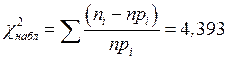 Полученное значение Таким образом, чтобы проверить нулевую гипотезу Н0, необходимо вычислить наблюдаемое значение критерия Правило. Если Если Пример 8. При уровне значимости 0,95 проверить гипотезу о нормальном распределении генеральной совокупности. Задано интервальное распределение выборки объема n =130 (таблица 2). Таблица 2