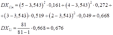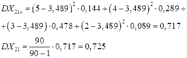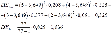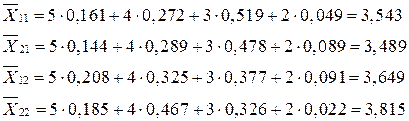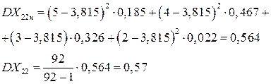 Найдем выборочные средние и дисперсии по каждой группе оценок.