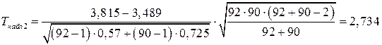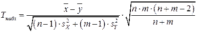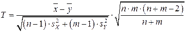 Поскольку Таким образом, погрешности определения средних оценок различаются незначимо и можно производить сравнение средних оценок. Сравнение выборочных дисперсий часто предшествует задаче сравнения двух средних выборочных значений при неизвестных генеральных дисперсиях.. Этот случай характерен для малого объема выборок, когда получить хорошие оценки генеральных дисперсий невозможно. В то же время, априорно можно предположить, что неизвестные генеральные дисперсии равны между собой. Если же нет оснований считать дисперсии одинаковыми, можно проверить гипотезу о равенстве генеральных дисперсий, пользуясь критерием Фишера-Снедекора. Итак, в предположении, что генеральные дисперсии одинаковы требуется проверить нулевую гипотезу Н 0: M (X)= M (Y) о равенстве математических ожиданий генеральных совокупностей. Т.е. требуется установить значимо или незначимо различаются выборочные средние, найденные по независимым малым выборкам объемов m и n. В качестве критерия проверки нулевой гипотезу примем случайную величину: