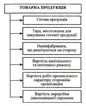 де ГП — готова продукція; ПФ — напівфабрикати, що реалізуються на сторону (іншим підприємствам); Пп __ роботи промислового характеру, що виконуються для інших підприємств, своїх підрозділів; Об — вартість обробки продукції з давальницької сировини.