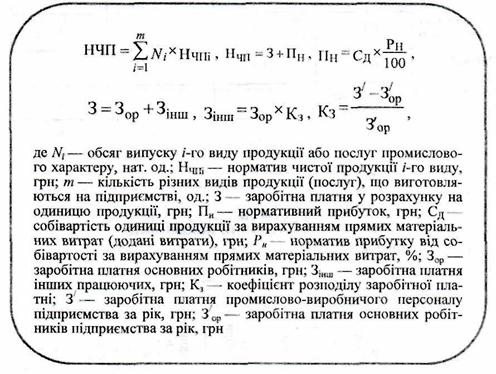 Нормативно-чиста продукція характеризує частину ціни виробу (робіт, послуг), яка включає основну й додаткову заробітну платню персоналу з відрахуваннями на соціальні заходи та нормативний прибуток