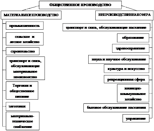 Сферы труда определились в прошлом на основе признания решающей роли в жизни общества производства материальных благ. Эта сфера деятельности получила название материального производства, где непосредственно производятся различные материальные блага, где труд направлен на изменение вещества природы. Вплоть до настоящего времени материальное производство считается главной сферой приложения труда. Сфера услуг получила название непроизводственной сферы, где трудовая деятельность направлена на человека - на его сохранение, преобразование, развитие. Основой развития этой сферы является совершенствование материального производства, повышение на его предприятиях производительности труда. Объективные различия, существующие в конкретных сферах приложения труда, в свое время получили отражение в наименованиях отраслей экономики страны. Но это отражение было неточное. Отраслевые особенности предприятия определялись только по основному виду его деятельности. В зависимости от вида основной деятельности предприятие относилось к конкретной отрасли народного хозяйства, хотя отдельные трудовые процессы на этом предприятии могли относиться к различным сферам деятельности (транспортные, культурно-оздоровительные и другие социальные объекты на промышленном предприятии). Классификация отраслей народного хозяйства (ОКОНХ) в отечественной статистике труда использовалась вплоть до 2004 г. В соответствии с ОКОНХ к материальному производству относились такие отрасли как промышленность, строительство, транспорт и связь, торговля и общественное питание, сельское и лесное хозяйство и ряд других видов производственной деятельности. Своеобразие отраслей сферы материальных услуг (транспорт, связь торговля) состояло в том, что работники предприятий этих отраслей выполняли как производственные, так и непроизводственные функции (грузоперевозки и пассажироперевозки, оптовая и розничная торговля и т. д.). К непроизводственной сфере относились жилищно-коммунальное хозяйство, здравоохранение, физическая культура и спорт, образование, социальное обеспечение, культура и искусство, наука и научное обслуживание, финансы, управление и некоторые другие виды непроизводственной деятельности.