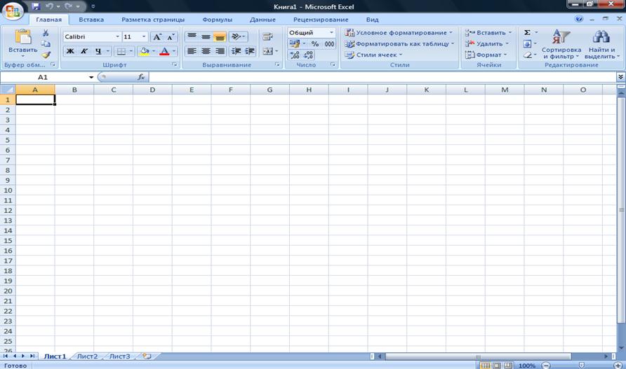 Excel - это программа, которая относится к категории электронных таблиц и является частью пакета Microsoft Office. Одним из основных достоинств Excel является универсальность, в Excel наиболее развиты средства для выполнения различных вычислений над числами. Но ее можно применять и для решения множествадругих задач, не относящихся к числовым. Excel может применяться для решения следующих задач: - решение числовых задач, требующих больших вычислений. Создание отчетов, анализ результатов исследований, а также применение всевозможных методов финансового анализа; - создание диаграмм. Excel содержит средства для создания различных типов диаграмм, а также предоставляет широкие возможности по их настройке; - организация списков. Excel позволяет эффективно создавать и использовать структурированные таблицы, в столбцах которых находятся однотипные данные; - доступ к данным других типов. Возможность импортирования данных из множества различных источников; - создание рисунков и схем. Использование фигур Excel для создания схем. - автоматизация сложных задач. Используя макросы Excel, можно выполнять однотипные задачи. Результаты действий, выполняемых в Excel, хранятся в файле рабочей книги, который открывается в отдельном окне (рис. 1-3). Рабочая книга состоит из одного или нескольких рабочих листов, а рабочий лист состоит из отдельных ячеек. В каждой ячейке может храниться число, формула или текст. Рабочий лист также имеет скрытый уровень (скрытый слой), на котором содержатся графики, диаграммы, изображения и т.п. Чтобы перейти из одного рабочего листа в другой, нужно щелкнуть на соответствующем ярлычке листа, который находится в нижней части окна рабочей книги. Кроме того, рабочие книги могут содержать л исты диаграмм, на каждом из которых может находиться по одной диаграмме. Чтобы перейти на лист диаграммы, нужно щелкнуть на ее ярлычке.