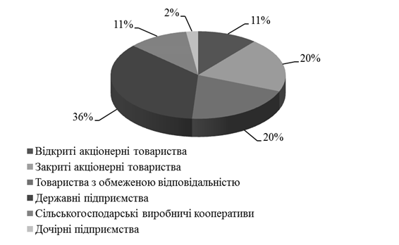 Сучасний стан виноградно-виноробної галузі АР Крим характеризується тим, що обсяги виробництва продукції знижуються, катастрофічно зменшуються площі насаджень, більше половини виноградників в плодоносному віці має проріджену 25-40 % структуру і вік 20 і більше років. Промисловою обробкою винограду в Криму займаються 73 виноградно-виноробних підприємства різних форм власності і механізмів господарювання. Серед виробників винограду найбільшу частку займають державні підприємства (рис. 4.1), які, існуючи за рахунок бюджетних коштів, погіршують загальну картину фінансування галузі.