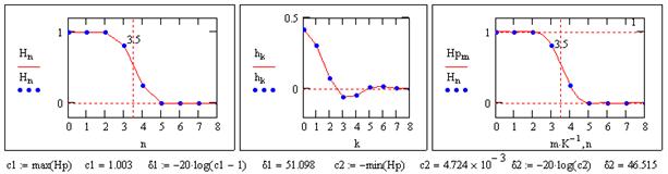 На рис. 7.6.3. показан результат подбора частотных значений характеристики фильтра в районе переходной зоны (2 точки), что позволяет более чем в 30 раз снизить осцилляции частотной характеристики.