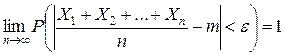 будет сколь угодно близка к единице, если число случайных величин достаточно велико. Т.е. можно записать: