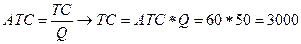 Малое предприятие выпустив 50 изделий имело следующие издержки: постоянные 200 денежных единиц, средние валовые 60 денежных единиц. Сколько составят его средние переменные издержки (AVC). ATC = 60 FC = 200 Q = 50