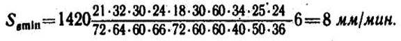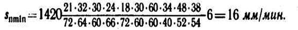 На циліндрічній частині поперечного ходового гвинта XVIII вільно встановлені шестерні 54 і 50, які обертаються в різні сторони, оскільки шестерня 54 отримує обертання від валу XV безпосередньо через шестерню 38, а шестерня 50 — через шестерню 35 і паразитне колесо 39. Кулачковою муфтою М6 включається, вимикається і реверсується поперечна подача, найменша швидкість якої Sn minвизначається з виразу^