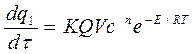 где: К – константа скорости реакций, зависящая от температуры; с – концентрация реагирующих веществ; n – порядок реакции; Е – энергия активации реакции. Скорость выделения тепла при реакции: