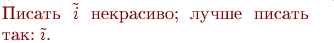 (Для одиночных акцентов эти команды применять тоже можно.) Впрочем, в последних версиях пакета amsmath команды типа \hat исправлены и действуют так же, как их аналоги с большой буквы. Отметим, что TeX позволяет ставить надстрочные знаки над буквами не только в математической формуле, но и в обычном тексте (в этом случае такие знаки обычно называют "диакритическими"), но команды для постановки этих знаков совершенно другие. Об этом — на с. 106.