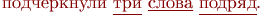 Выглядит это не очень удачно: в словах с буквами вроде р, опускающимися ниже строки, линейки, подчеркивающие слово, также опускаются ниже строки, а хотелось бы, чтобы все эти линейки были на одном уровне. Выход из положения такой: добавить ко всем словам по невидимой букве, которая не занимает места по горизонтали, а по вертикали опускается на максимально возможное в текущем шрифте расстояние. В качестве такой буквы как раз и возьмем невидимую линейку, генерируемую командой \strut: