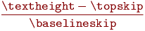 было целым числом. В LaTeX'овском стандарте topskip всегда равен 10 пунктам. Что же до \baselineskip, то он равен 12 пунктам, если основной шрифт кегля 10, пункта, если основной шрифт кегля 11, и пунктам в кегле 12.