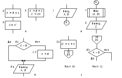 2. Основное направление потока информации в схемах может не отмечаться стрелками. Основное направление – сверху вниз и слева направо. Если очередность выполнения блоков не соответствует этому направлению, то возможно применение стрелок.
