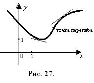 Точки, принадлежащие кривой, и отделяющие участки выпуклости от участков вогнутости, называются точками перегиба кривой (рис. 27). Достаточное условие выпуклости, вогнутости графика функции: если функция Необходимое условие для точки перегиба: если х 0 – абсцисса точки перегиба графика функции