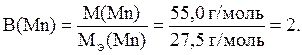 Валентность марганца (по модулю совпадающую со степенью окисления) определим по формуле, связывающей молярную и эквивалентную массы элемента (1.1):