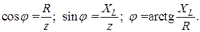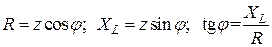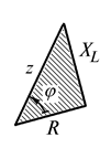 Если стороны треугольника напряжений (рис. 2.9 б) разделить на действующее значение тока, то получим треугольник сопротивлений (рис. 2.9 в). Из треугольника сопротивлений получают соотношения для угла сдвига фаз, а также связь между параметрами цепи
