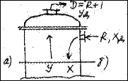 1) Допущение: 2) Допущение: постоянство мольного расхода паровой фазы по всей колонне. (R+1)=const. Интегрирование: Откуда В. Для нижней, исчерпывающей части колонны.
