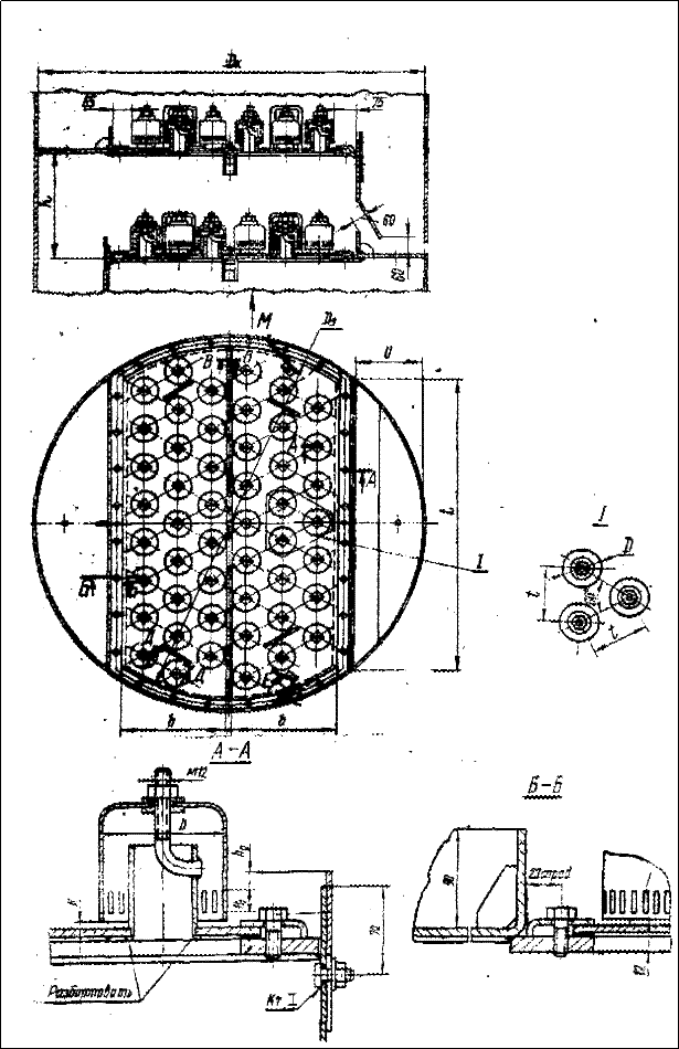 Рис. 145. Детали устройства и крепления одного изтипов нормализованных колпачковых тарелок.