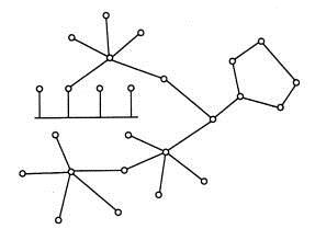 Рис. 4.1. Типовые топологии сетей В то время как небольшие сети, как правило, имеют типовую топологию - звезда, кольцо или общая шина, для крупных сетей характерно наличие произвольных связей между компьютерами. В таких сетях можно выделить отдельные произвольно связанные фрагменты (подсети), имеющие типовую топологию, поэтому их называют сетями со смешанной топологией (рис. 4.2).