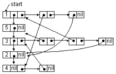 Собственно, этот способ представления графов является всего лишь внутренней реализацией списка смежности: в одном линейном списке содержатся номера "начальных вершин", а в остальных - номера смежных вершин или указатели на эти вершины. В качестве примера (см. рис. 11.11) приведем иерархический список, задающий орграф, изображенный на рис. 11.6.