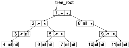 Рис. 12.2. Последовательность нумерации вершин при прямом обходе дерева