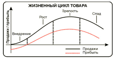 Найдя свой товар на рынке (нужный прежде всего потребителю), производитель, маркетолог предприятия должен определить, сколько времени просуществует товар на рынке, т.е. суметь предвидеть и просчитать его жизненный цикл. Любой товар подобно живому организму, рождается, живет и умирает. Жизненный цикл продукта впервые исследован на примере марочных товаров. Само понятие жизненного цикла разработано в конце 50-х и начале 60-х годов во время периода стабильности, равномерного экономического роста и увеличения спроса на потребительские товары. В жизненном цикле отражаются изменение роста, вкуса, стиля, влияния технического прогресса. Цикл можно обнаружить не только у марок и продуктов, но и у материалов, формы, цвела, технологий. Жизненный цикл товара не всегда прекращается вместе с его исчезновением с рынка. Некоторые товары могут начать новый цикл уже в течение стадии насыщения, продлевая свое существование. Жизненный цикл продукта - это время с момента первоначального появления продукта на рынке до прекращения его реализации на том же рынке. Жизненный цикл описывается изменением показателей объема продаж и прибыли во времени и состоит из следующих стадий (число их у разных авторов колеблется от четырех до шести) Период от вывода товара на рынок до снятия его с производства. Длительность жизненного цикла не одинакова у разных товаров. Однако общая современная тенденция заключается в сокращении его продолжений, ускорению, обусловленному выпускаемой продукцией.