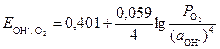 где рН – водородный показатель среды. Кислородный электрод по устройству аналогичен водородному. В щелочной среде электродное равновесие имеет вид О2 + 2Н2О + 4× Уравнение для расчета потенциала