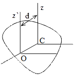 стержень массы m и длины L: Однородный сплошной диск с центром в точке С радиуса R и массы m: цилиндр с массой распределенной по ободу (обруч): Теорема Гюйгенса-Штейнера момент инерции тела относительно произвольной оси равен моменту инерции относительно оси ей параллельной и проходящей через центр масс тела плюс произведение массы тела на квадрат расстояния между осями: