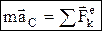 если координатные оси являются главными относительно своего начала, то: J = Jxcos2a + Jycos2b + Jzcos2g. Теорема о движении центра масс системы. Произведение массы системы на ускорение ее центра масс равно геометрической сумме всех действующих на систему внешних сил Закон сохранения движения центра масс. Если главный вектор (векторная сумма) внешних сил остается все время равным нулю, то центр масс механической системы находится в покое или движется прямолинейно и равномерно. Аналогично в проекциях на оси, если Количество движения системы Q (иногда обозначают К) – вектор, равный геометрической сумме (главному вектору) количеств движения всех точек системы: