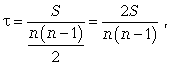 где d = Nx - Ny, т.е. разность рангов каждой пары значений х и у; n - число наблюдений. Ранговый коэффициент корреляции Кэнделла (