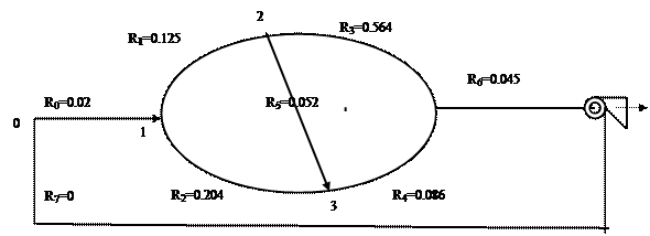 Рис.7.1 Схема к расчету распределения воздуха в ветвях последовательно-диагонального соединения горных выработок