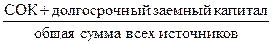 Он показывает ту часть собственного капитала, которая была направлена на формирование оборотных средств предприятия. В зависимости от меры обеспеченности запасов соответствующими источниками различают четыре степени финансовой устойчивости: 1) абсолютная устойчивость финансового состояния: СОК 2) нормальная устойчивость финансового состояния: СОК + долгосрочные кредиты и займы 3) неустойчивое финансовое состояние: СОК + долгосрочные. кредиты и займы + краткосрочные кредиты и займы 4) кризисное финансовое состояние: СОК + долгосрочные кредиты и займы + краткосрочные кредиты и займы + кредиторская задолженность В последних двух случаях финансовая устойчивость может быть восстановлена путем обоснованного снижения уровня запасов и затрат. Для количественной оценки финансовой устойчивости предприятия рассчитывается система финансовых коэффициентов, характеризующих финансовую устойчивость с разных сторон. К числу коэффициентов относят: 1) Коэффициент финансирования: Кфинанс. = где ПК – привлеченный капитал