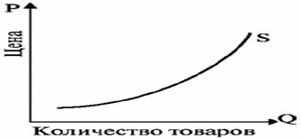 Аналогично спросу, величина предложения – это количество товаров и услуг, которые продавцы способны и готовы продать по определенной цене в определенном месте и в определенное время. Графическая зависимость между ценой и объемом предложения получила название кривой предложения S (рис. 5).