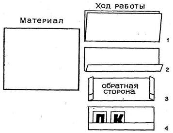 6. Ориентировка в задании. Учащиеся определяют назначе­ние изделия, его форму, размеры, особенности конструкции, количество начерченных клеток по длине и ширине, материал и инструменты.