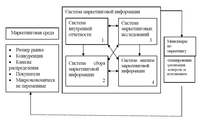 Комплексное и последовательное использование разных источников позволяет сформулировать систему маркетинговой информации, включающую внутреннюю информацию, внешнюю информацию, банки моделей, методов обработки и анализа данных.