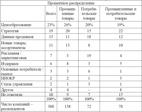 Таблица 9.6 Наиболее ценные виды данных (по типам рынков) Процентное распределение