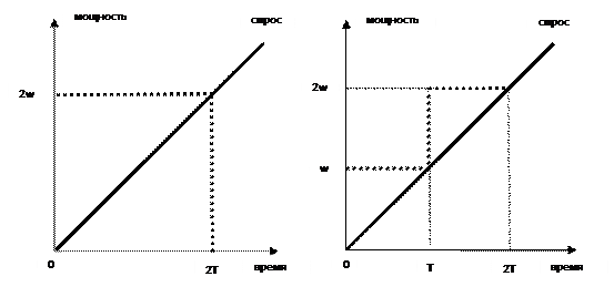 Если этот закон на самом деле верен, рассмотрите следующее упражнение. Предположите, что необходимо, чтобы компьютерная производительность системы была 2w в конце двух периодов времени длиной T, в течение которых процентная ставка равняется r. Допустите, что спрос возрастает линейно, а компьютерные цены остаются константой в течение двух периодов времени. Рассмотрите затем следующие сценарии приобретения компьютера: Сценарий A: купить компьютерную систему с производительностью 2w в момент времени 0. Сценарий B: купить систему с производительностью w в момент времени 0 и другую систему с производительностью w в момент времени T.