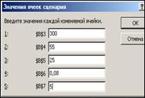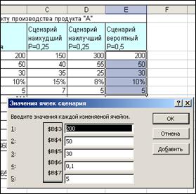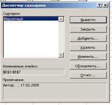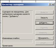 1.1. Выделить блок ячеек, которые будут использоваться в качестве изменяемых (блок В3:В7). 1.2. Выбрать Сервис - Сценарии - Диспетчер сценариев – Добавить.
