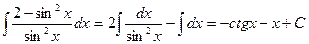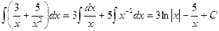 Для вычисления интеграла сначала воспользуемся 2 и 3 свойствами неопределенного интеграла, а затем применим 1 табличный интеграл:
