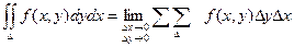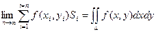 В приведенной выше записи имеются два знака S, т.к. суммирование производится по двум переменным х и у. Т.к. деление области интегрирования произвольно, также произволен и выбор точек Рi, то, считая все площади Si одинаковыми, получаем формулу: