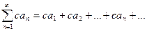 Теорема 1. Если ряд (1) сходится и его сумма равна S, то для произвольного числа с ряд (2) тоже сходится, и его сумма равна сS. Если же ряд (1) расходится и с ≠ 0, то и ряд (2) расходится.